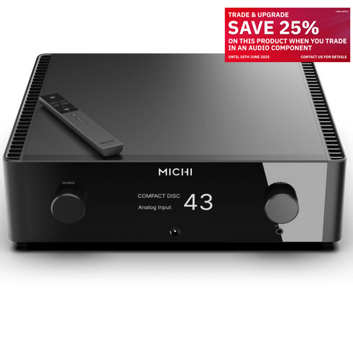 The Michi P5 Series 2 connects to all your favourite music sources including Analog RCA and XLR Balanced, Moving Magnet and Moving Coil Phono, aptXTM HD Wireless Bluetooth, Coaxial and Optical. The PC-USB input supports PCM (32-bit 384kHz) and Quad DSD (11.2MHz) music files and full MQA hardware decoding up to 24-bit 384kHz.
