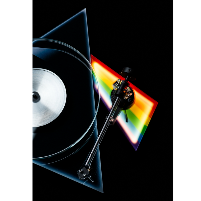 The low resonance tonearm is a complete new design and definitely one of the highlights of this turntable. Its combination of black aluminium parts and acrylic results in an absolute eye-catcher. The supplied Pick it PRO Special Edition is tuned to fit the whole concept and delivers the rich sound you would expect for a Dark Side Of The Moon turntable.